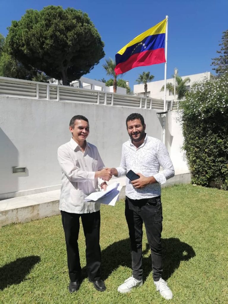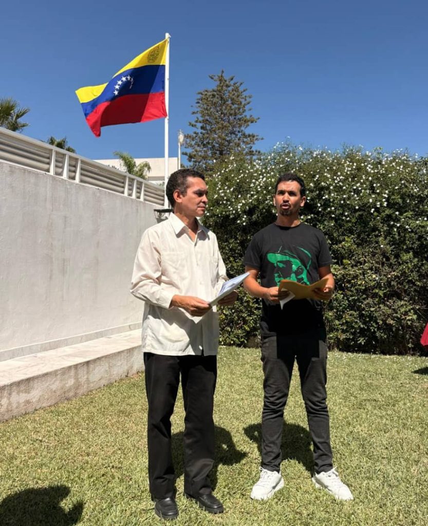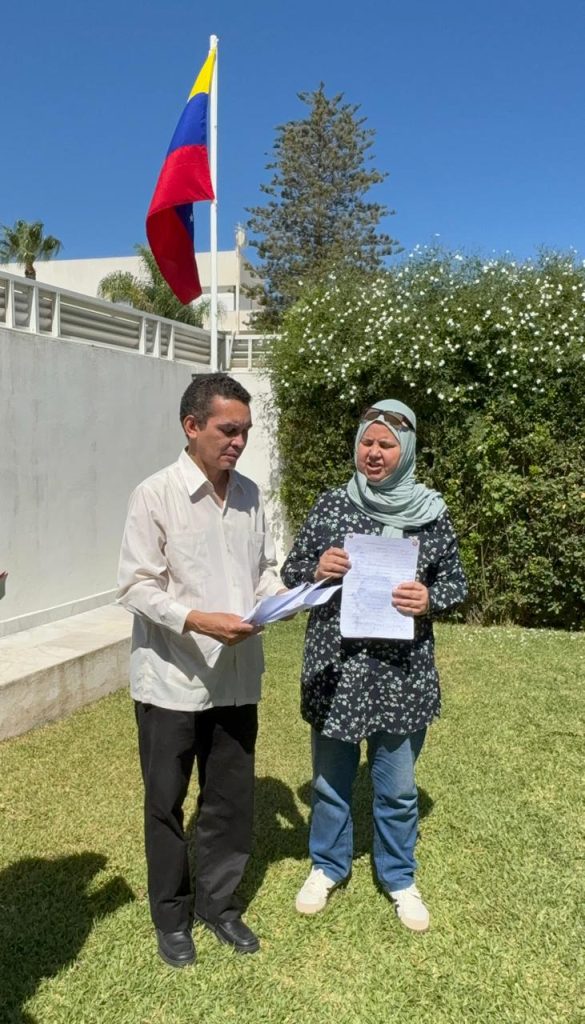 Los partidos políticos Corriente Popular, Partido Patriótico Democrático Socialista, Túnez en Adelante y Movimiento Echaab, junto con movimientos sociales, como la Organización Juventud Nacionalista Árabe y la Organización Juventud Árabe de la República de Túnez, visitaron la Embajada de la República Bolivariana de Venezuela e hicieron la primera entrega de firmas de adhesión al comunicado internacional en contra de la amenaza militar de Estados Unidos (EEUU) a la nación suramericana.